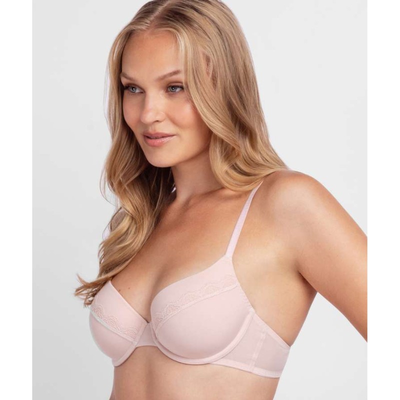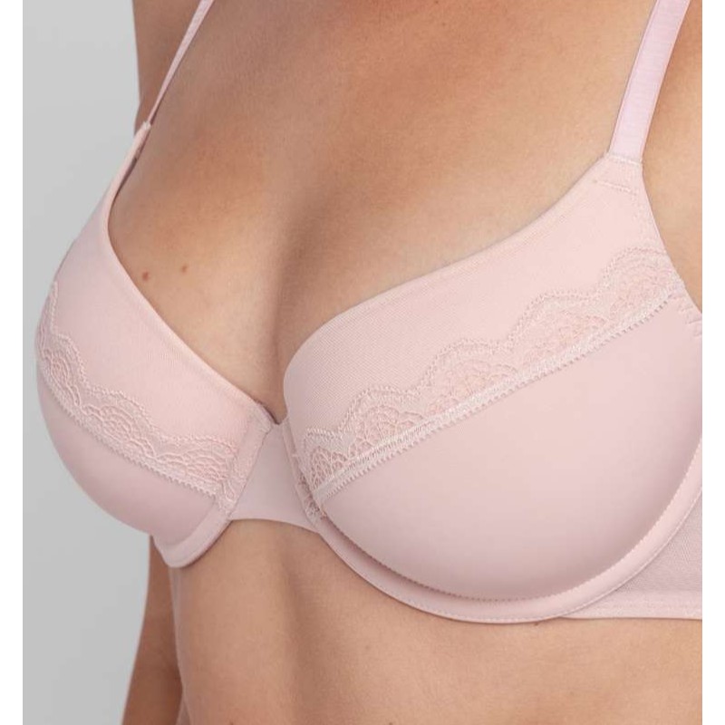 - Το ροζ-μπέζ σουτιέν είναι με σχέδιο δαντέλας.