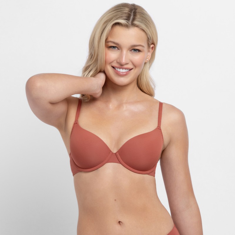 - Το καφέ σουτιέν είναι με σχέδιο δαντέλας.
