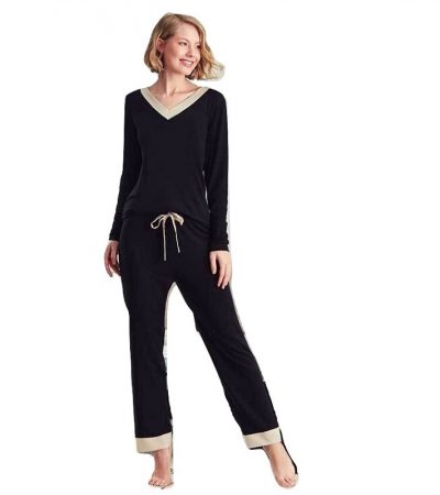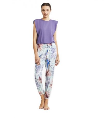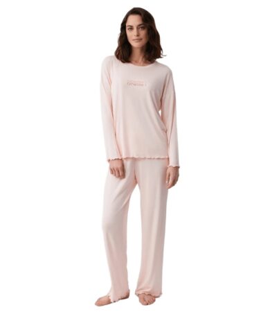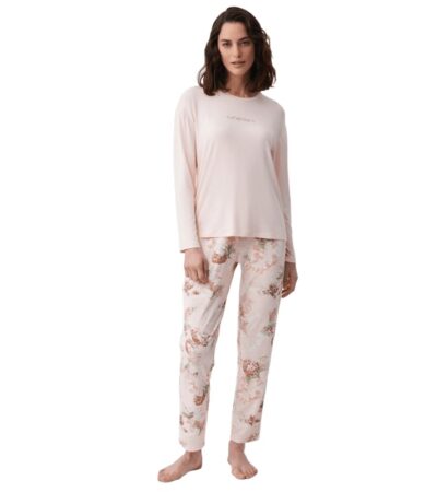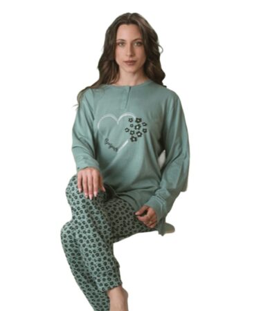 - Γυναικεία πυτζάμα με μακρύ μανίκι και μακρύ παντελόνι με πατιλέτα.