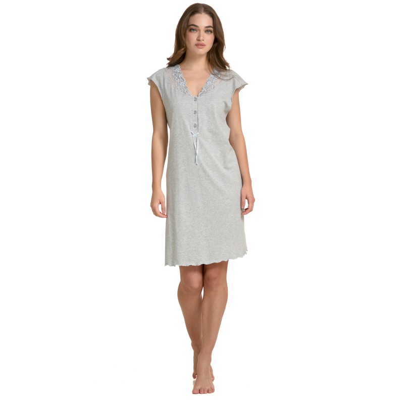 Νυχτικό Γυναικείο με Κοντό Μανίκι και Πατιλέτα Primavera-M166 ΓΚΡΙ