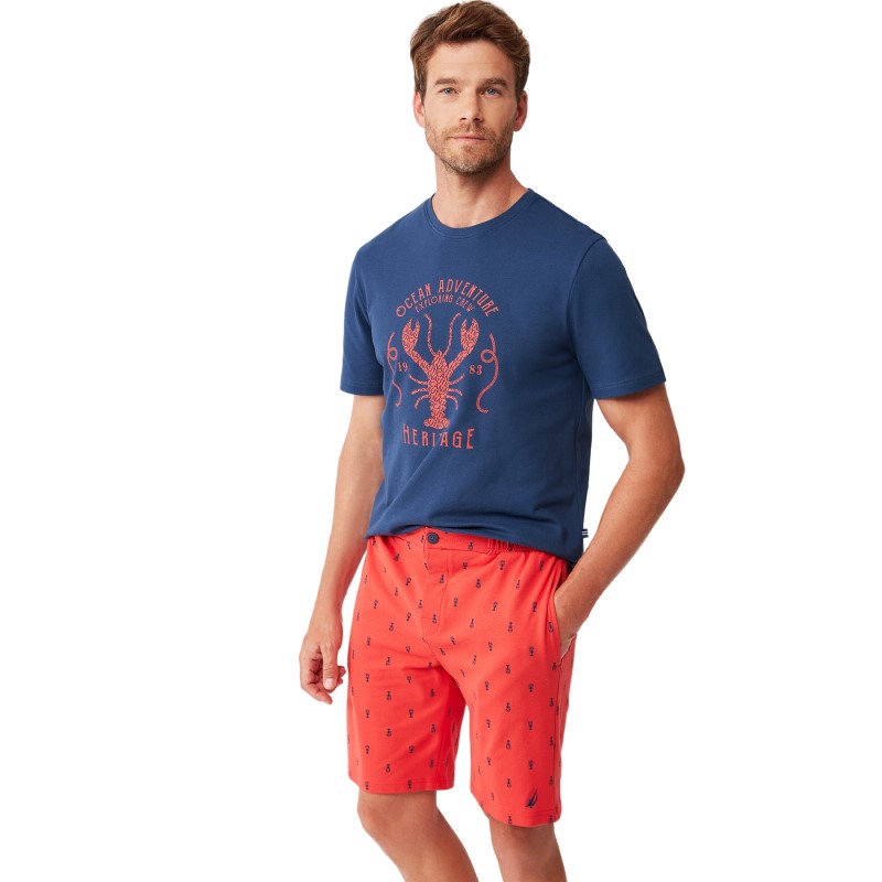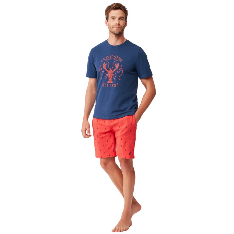 Πιτζάμα Ανδρική Κοντό Μανίκι & Κοντό Παντελόνι Nautica