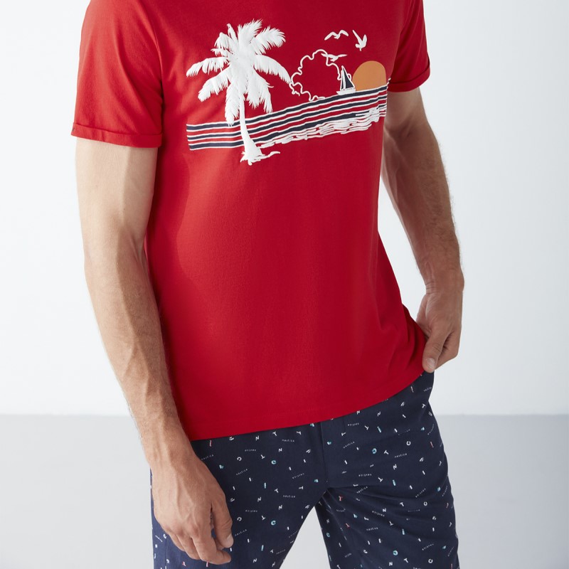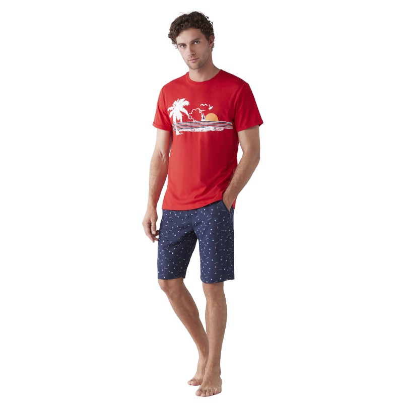 Πιτζάμα Ανδρική Κοντό Μανίκι & Κοντό Παντελόνι Nautica
