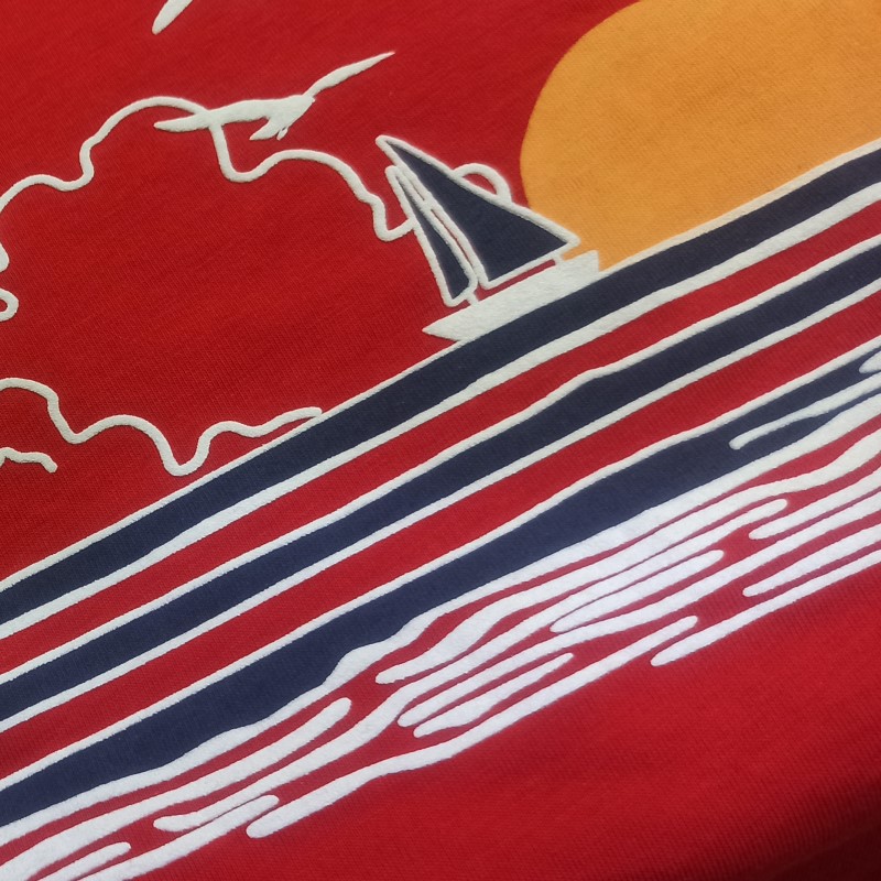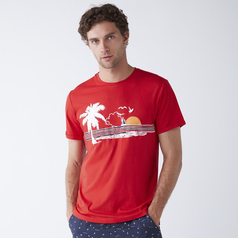 - Μπλούζα σε χρώμα κόκκινο με στρογγυλή λαιμόκοψη και σχέδιο.