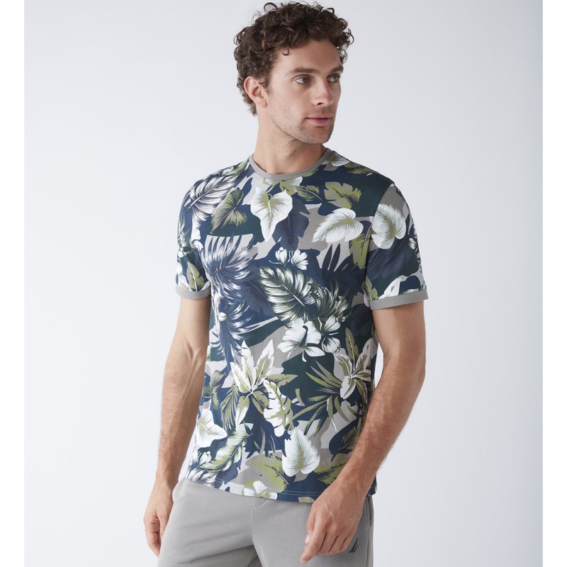 - Μπλούζα σε χρώμα φλοράλ με στρογγυλή λαιμόκοψη.