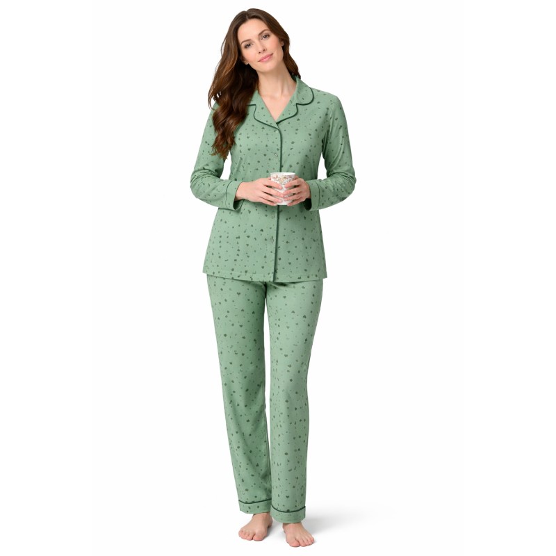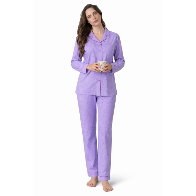 - Γυναικεία πιτζάμα λεπτή κουμπωτή με μακρύ μανίκι και μακρύ παντελόνι καλοκαιρινή.
