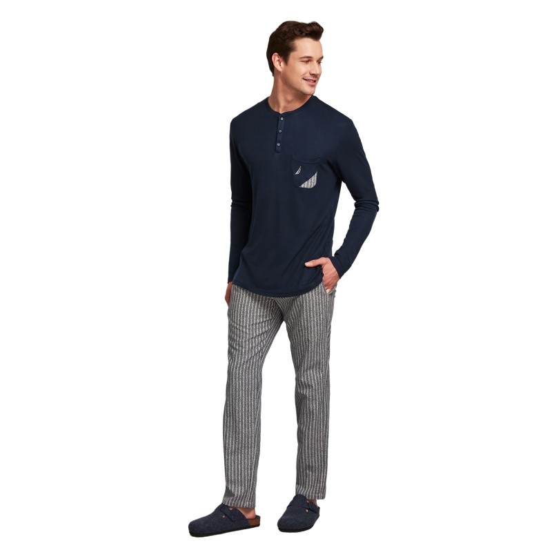 Πυζάμα Ανδρική Μακρύ Μανίκι & Μακρύ Παντελόνι Nautica-NTM035 ΜΠΛΕ