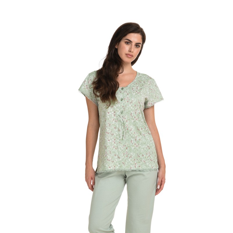 - Γυναικεία πυτζάμα με κοντό μανίκι και κάπρι παντελόνι με V.
